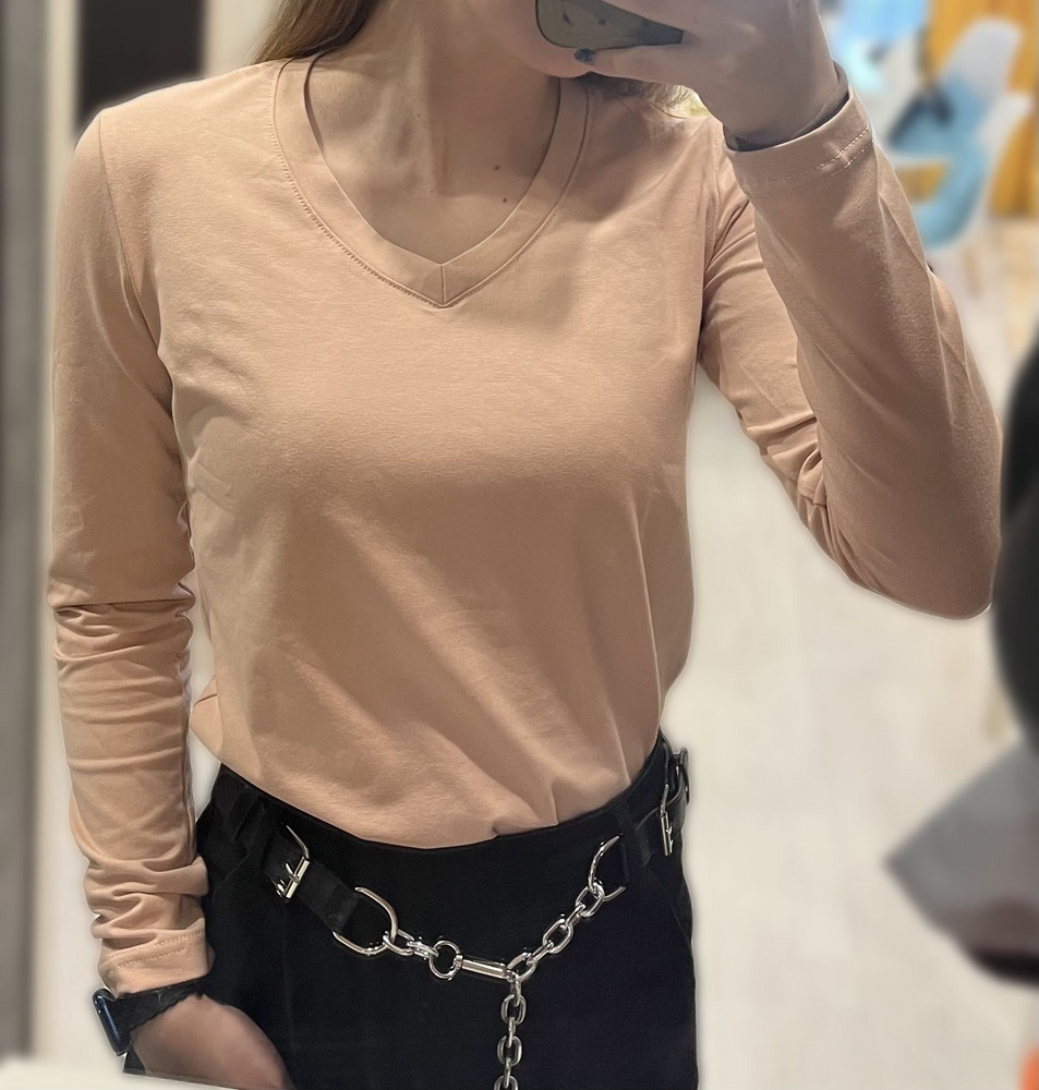 Стильная V-образная горловина визуально вытягивает линию шеи и делает модель более женственной. Длинный рукав универсален для любого сезона: в прохладную погоду его можно носить самостоятельно, а зимой — использовать как базовый слой под кардиганы, джемперы, жилеты или жакеты.