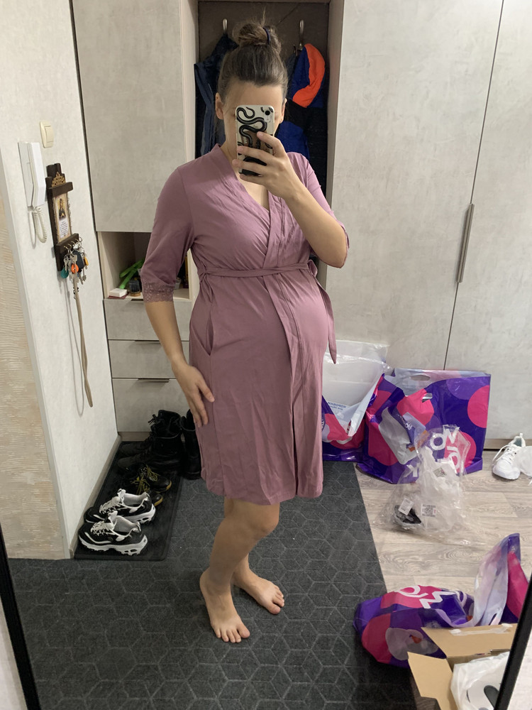 Ткань тонкая, просвечивается. Товар пришел в пакете от предыдущего покупателя-отказника. Все мятое. Как скомкали так и бросили. Пакет весь пыльный. Продаете для беременных, а все какое-то пыльное и грязное. Заводской упаковки не было.